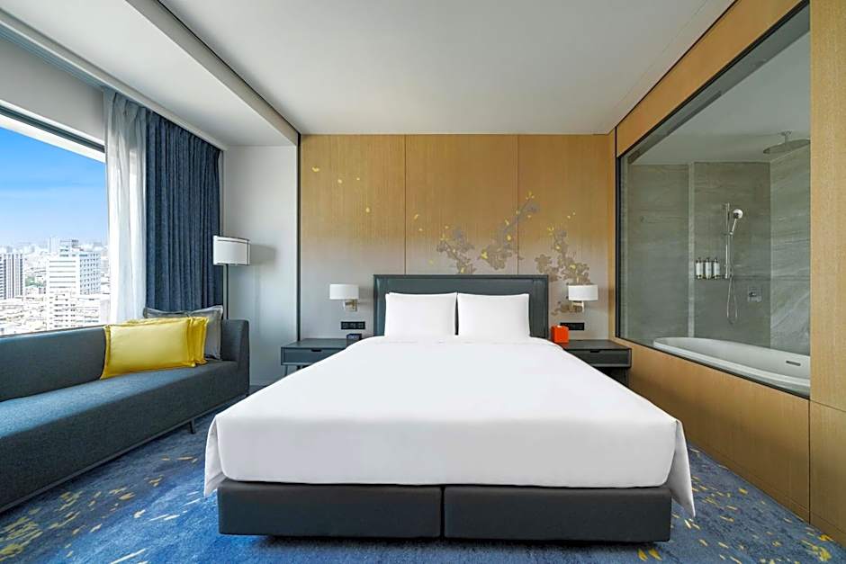 This spacious suite features 1 living room, 1 separate bedroom and 1 bathroom with a walk-in shower and bathrobes. The air-conditioned suite features a flat-screen TV with streaming services, a mini-bar, a tea and coffee maker, executive lounge access as well as city views. The unit has 1 bed.